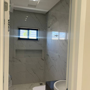 - Banheiros da suíte e social com bancadas de granito cinza absoluto;